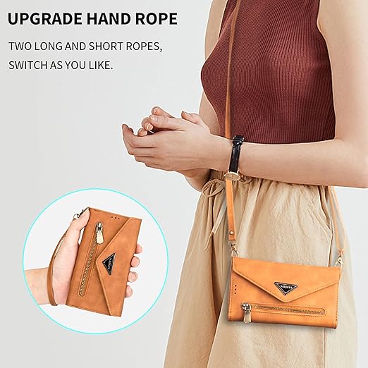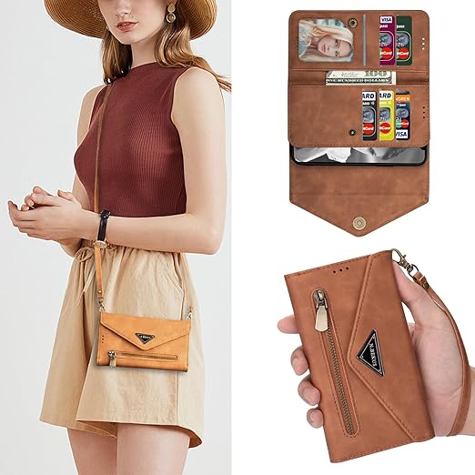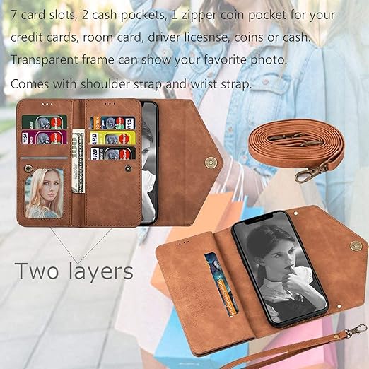 Cavor iPhone 14 6.1 対応スマホケース肩掛け首かけ 斜めがけ ショルダー アイフォン14 スマホ携帯用ケース iPhone14 手帳型ケース【封筒のデザイン】iPhone14 携帯ケース【多財布デザイン】iPhone14 case クロスボディケースカード磁気ボタン機能 ICカードホルダーカード収納 二つ折り財布【ライトブラウン】 a