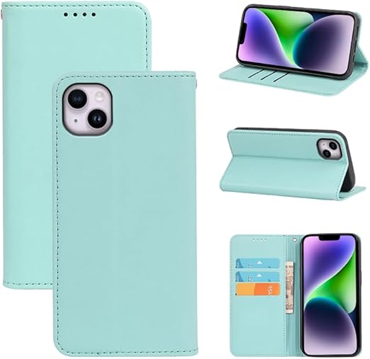 適用 iPhone 14 ケース 手帳型 iPhone14 用 手帳型 ケース カバー PUレザー カード収納 財布型 耐衝撃 ケース マグネット スタンド機能付き 5色 (iPhone14 用 ケース手帳型) (ミントグリーン) a