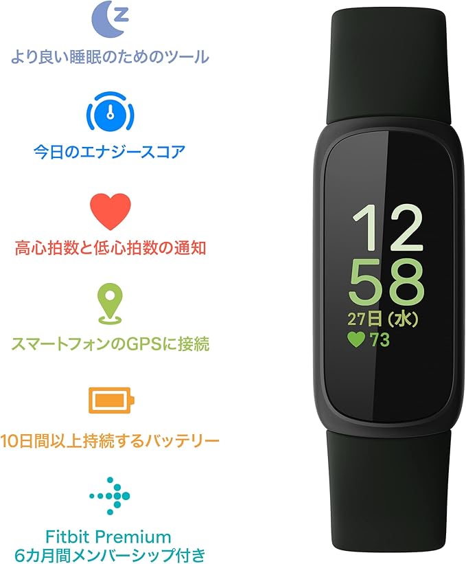 Fitbit Inspire 3 ミッドナイトゼン-ブラック 日本正規品 メーカー保証1年 最大10日間のバッテリー 健康指標ダッシュボード 心拍計測と睡眠スコア 心拍計 a