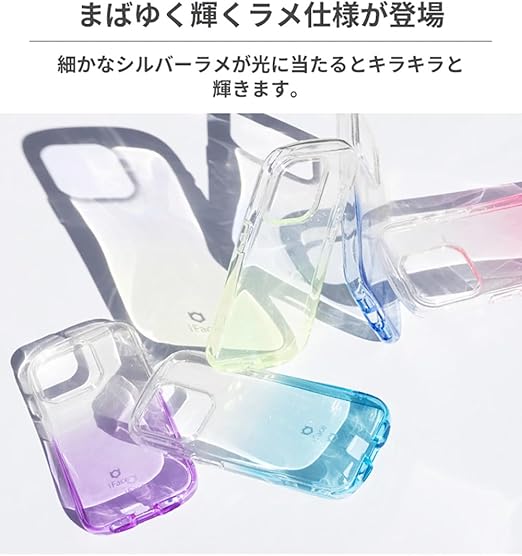 Color Me Pop!グラデーションが印象的なiFace Look in Clear Lolly(ロリー)からシルバーラメが入った新デザインが登場。細かなラメで一層iPhoneが可愛く引き立つ!iPhoneの色を透かして自分なりのグラデーションカラーを楽しむのもよし、iFaceのインナーシート(1枚推奨)を挟んでアレンジしてもOK。フチの透け感が可愛いので、淡い色の機器はもちろん、濃い色の機器でも楽しめます。
