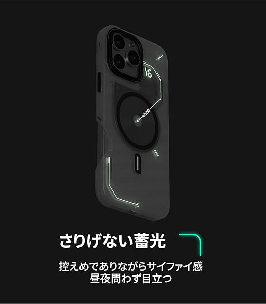 【控えめな蓄光でSF的な魅力】クラシックなデザインにサイバーパンクのパターンと蓄光機能を組み合わせ、昼夜問わずスマホをエレガントに引き立てます。