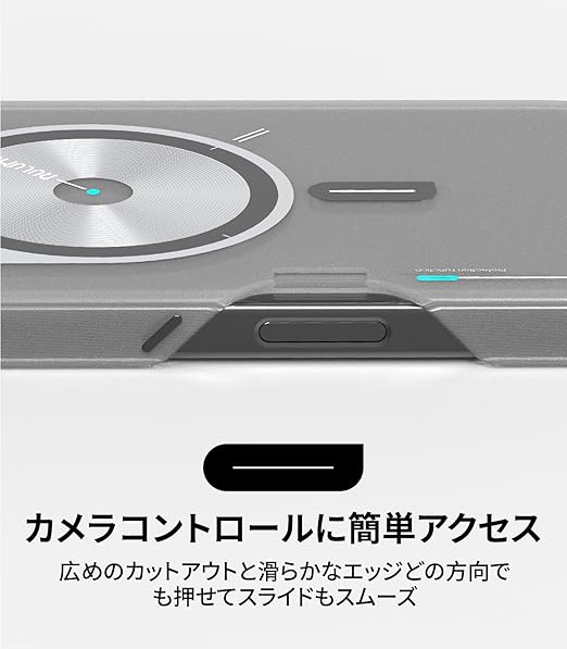 【カメラコントロール対応】人間工学に基づいた開口デザインで、カメラコントロールボタンの操作がさらに便利でスムーズに。広めのカットアウトが、どの方向からでも簡単にアクセスできるよう設計されています。どん