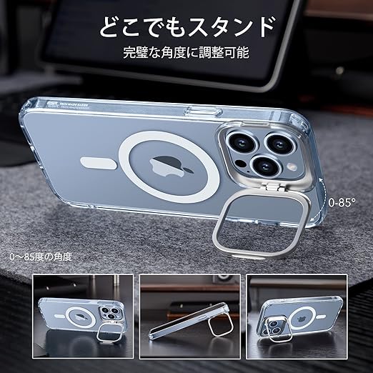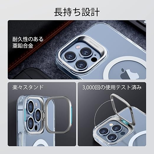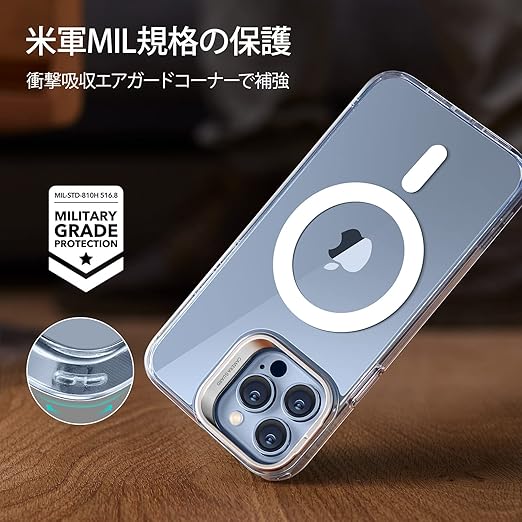 【デザイン受賞シリーズ!】ESR いphone13 pro max ケース MagSafe 対応 スタンド付き 角度調整可能 3WAY置き HaloLock搭載 米軍MIL規格の保護 耐衝撃 カメラリング 傷防止背面 iPhone 13 Pro Max ケース ストラップホール付き いphone3promaxスマホケース 6.7インチClassic Series(クリア) a