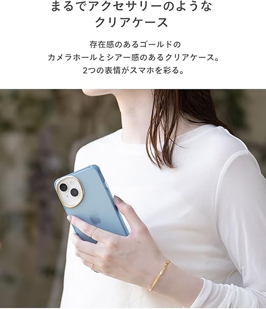まるでアクセサリーなクリアケース。ジュエルのような透明感とゴールドの輝きで、手元を美しく魅せる。