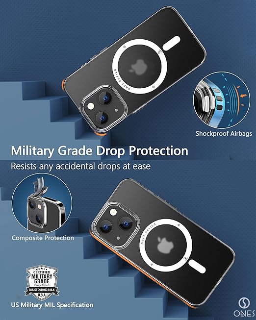 ONES 艶消し・透明 iPhone 14 超強磁性MagSafe対応 ハードケース 米軍MIL規格 超耐衝撃 エアバッグ〔 マット感・高靭性強化PCガードボード ? 高弾性衝撃吸収TPUバンパー 〕『 画面 ・ レンズ保護、フラットエッジ 』〔 指紋防止、黄変防止 〕 滑り止め 超軽量 Qi充電 つや消し カバー a