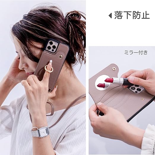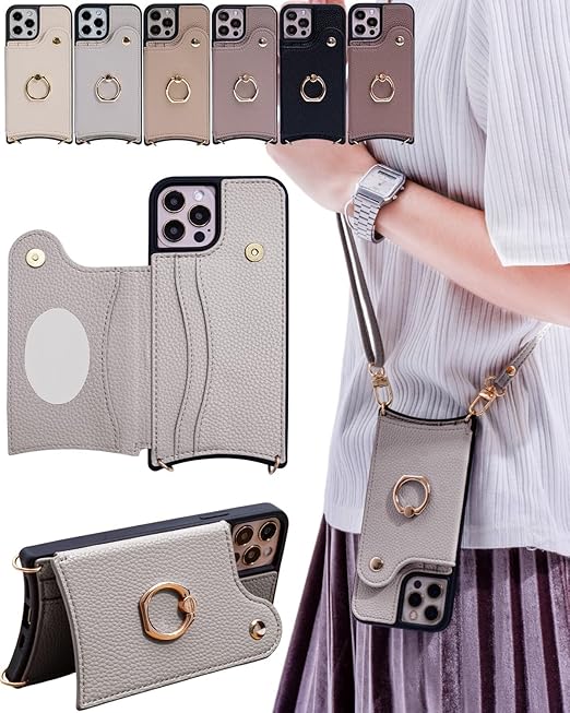 shinyle iphone13 ケース ショルダー 背面 手帳型 スマホ ショルダー いphone13 スマホケース ショルダー カード収納 首掛け iphone 13 ショルダー ストラップ付き 落下防止 肩掛け リング付き スタンド 可愛い アイフォン13 携帯 ケース おしゃれ ミラー iphone13 ケース ショルダー カード入れ 財布 薄型 グレー a