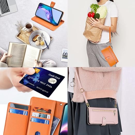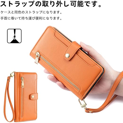 iphone 13 Pro ケース 手帳型 ショルダー アイフォン 13プロ 斜めがけ 手帳 ケース 財布型 【 ストラップ 長+短 2本】携帯カバー お財布付 肩がけ 首掛け ファスナー型 長さ調整可能 小銭入れ カード収納 スタンド機能 マグネット式 PUレザー オレンジ, Myw13p-OR a