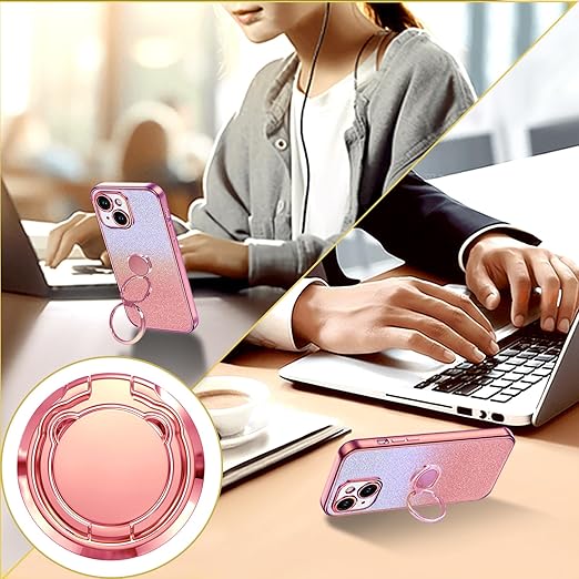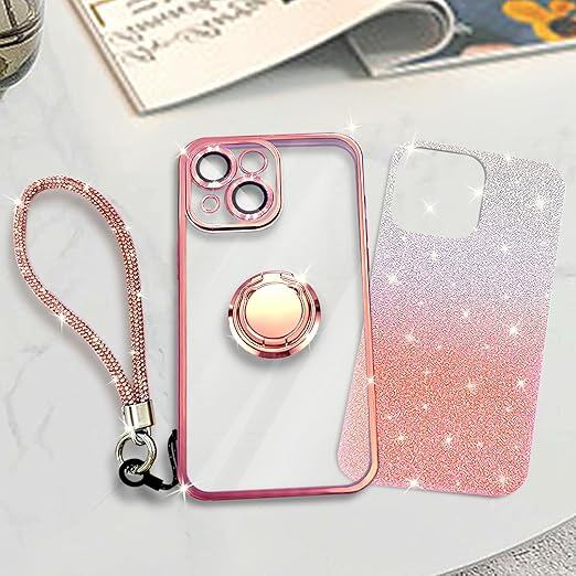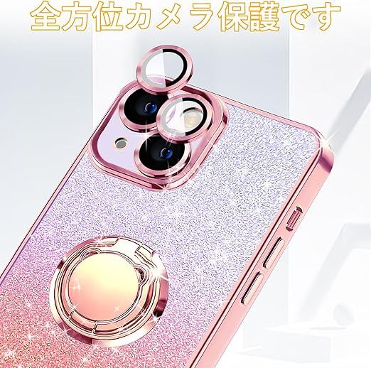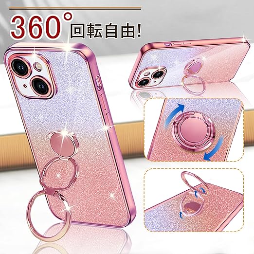 KAJICOO iPhone 13 Mini ケース ダブルリング付き グリッターカード&リストストラップ 16 カバー 軽量薄型 キラキラ デザイン可愛い おしゃれ 女子向け レンズ保護 iPhone 13 Mini スマホケース - ローズゴールド a