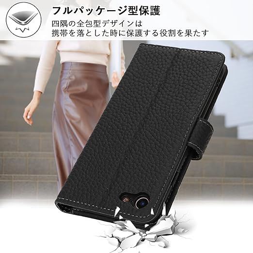 DEYHU 対応 iPhone SE ケース 第2世代 第3世代 手帳型 カード収納 スタンド機能 iPhone 8 ケース 本革 大容量 耐衝撃 カード収納 iPhone 7 ケース 手帳型 アイフォンse ケース レザー ブラック a