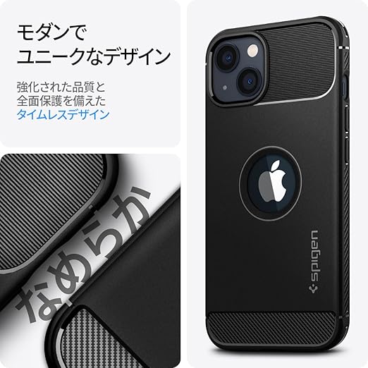 Spigen iPhone 13 ケース 耐衝撃 サラサラ TPU ソフトケース 滑り止め 米軍MIL規格取得 厚さ2.1mm 薄型 軽量 ワイヤレス充電対応 ラギッド・アーマー ACS03518 (マット・ブラック) a