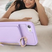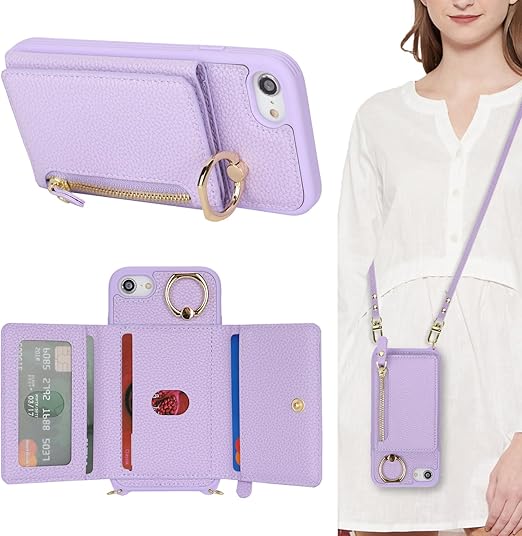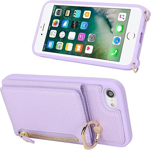 Pelanty for iPhone SE 2022 (第3世代)/ SE 2020 (第2世代) 縄掛けケース 手帳型 iPhone 7/ 8 ケースリング 肩掛け斜めがけ ショルダー 合成皮革+TPU マグネット 財布型カバー ICカード お札入れ小銭入れ 収納ポケット スタンド機能 アイフォンSE2/SE3/7/8 携帯背面カバー ストラップ付き パープル a
