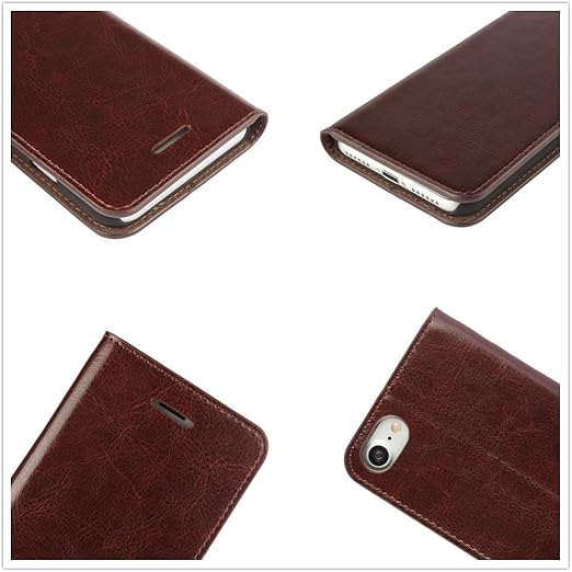 SKIASE iPhone 7/8/SE(第2世代)/SE(第3世代) ケース 手帳型 本革 高級レザー アイフォン7/8/SE2/SE3 通用ケース 携帯カバー 財布型 横置きスタンド機能 カード入れ カード収納 耐衝撃 全面保護 軽量 薄型 落ち着いた色 ダークブラウン a