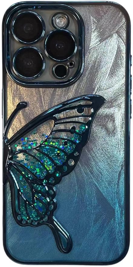 KoduneesanX iPhone14 ケース 対応 カバー かわいい 3D 蝶 蝶柄 キラキラ りゅうしゃ ぴかぴか光る 人気 韓国 iPhoneケース お洒落 おしゃれ アニメ 可愛い 蝶模様 光沢 フラッシュ紙片 TPU シェル 携?ケース ?(iPhone 14,#1 青) a