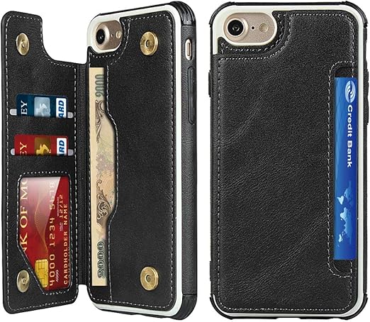 Sailortech iPhone SE3 /SE 2020/6/7/8 背面ケース手帳型 iPhone SE 第3世代 / 第2世代 カバー 縄掛け PUレザー 多機能携帯電話カード アイフォン 6s/6 ケースアイフォン8/7 ケース アイフォンse2 ケース手帳 収納付き 磁石吸着 ICカード収納 背面保護 横置き機能 耐衝撃 防塵 アイフォン6 6s 7 8 SE2 SE3 背面ケース対応 財布型 携帯カバー【選べる5色】4.7in-黒 a