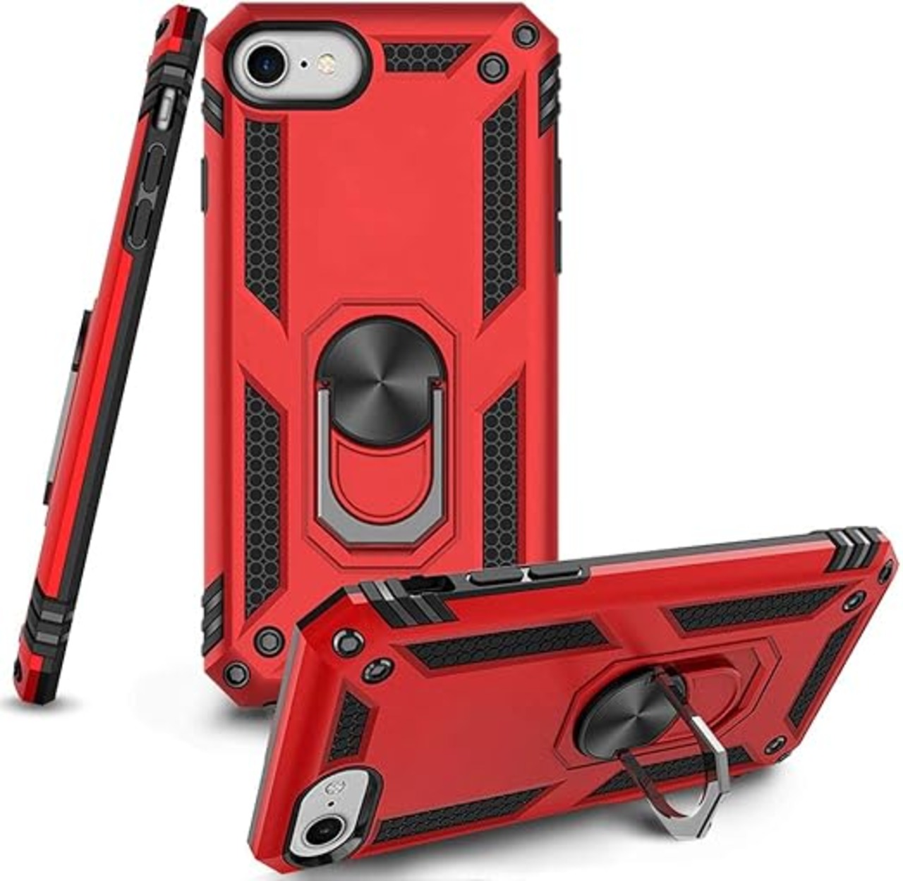【Tgaoleyd】iphone SE ケース(第三世代 2022年新型) iPhone SE2 ケース/iPhone 8 ケース/iPhone 7 ケース リング付き PC 対応 落下衝撃吸収 TPU フルプロテクトデザイン スマホケース ケース 耐衝撃 防塵 360度回転 クリア 車載ホルダー対応 アイフォンSE3 ケース 米軍MIL規格 スタンド機能 落下防止 軽量 薄型 擦り傷防止 取り出し易い 携帯カバー オシャレ 赤 D60-05 a