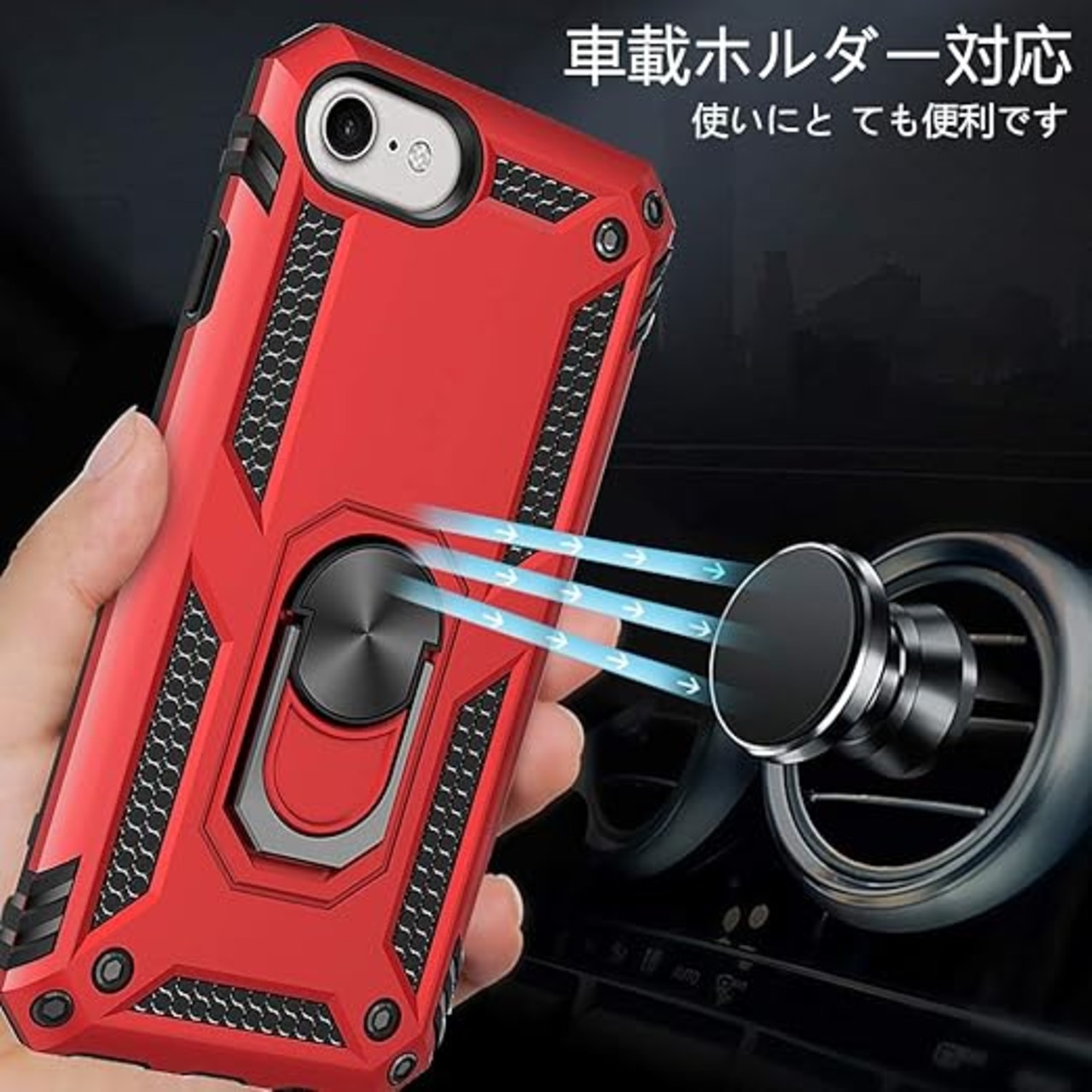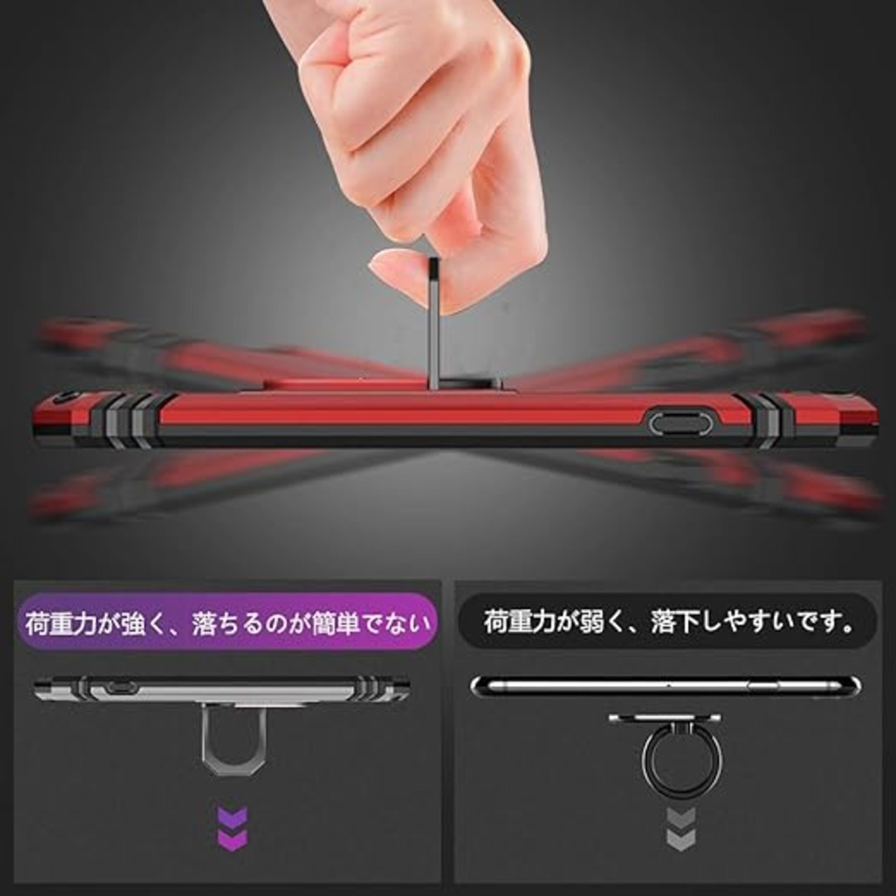 【リング付き、車載スタンド対応】後ろに付いているフィンガーリングはスタンド機能はもちろん、滑りにくくて持