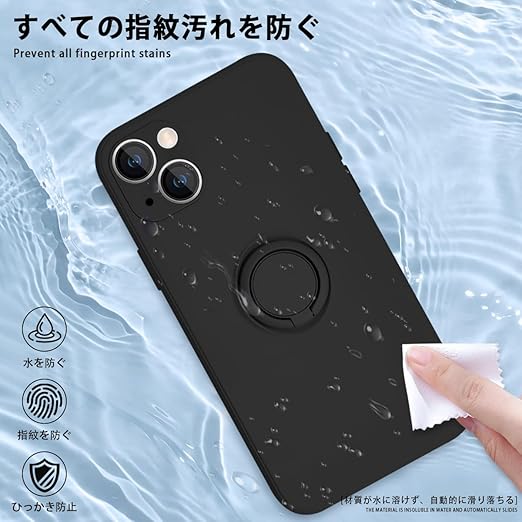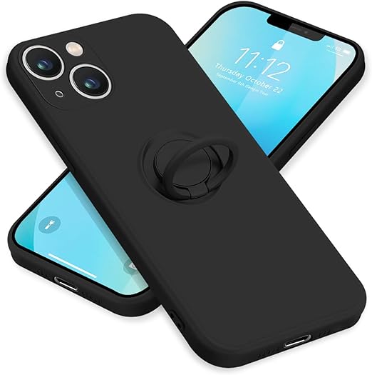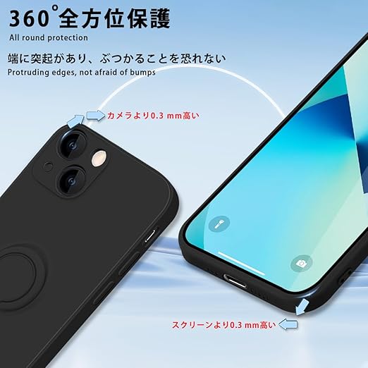 ZHUAZHULE iPhone13 ケース リング付き シリコン アイフォン13 スマホケース スタンド機能 カバー 耐衝撃 レンズ保護 360°回転 車載ホルダー ストラップホール付き 滑り止め 指紋防止 薄型 (ブラック) a