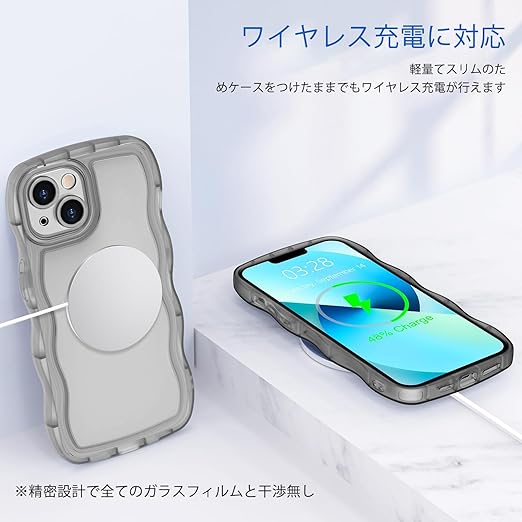 【かわいい波枠】これはiPhone 13mini ケース用のクリアユニークな境界デ