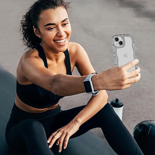 AVETUL iPhone 13 mini ケース クリア ウェーブ アイフォン13miniケース 韓国 うねうね おしゃれ 黄ばみなし かわいい ソフトTPU 滑り止め 薄型 軽量 iPhone 13 mini スマホケース ワイヤレス充電対応 ストラップホール付き アイフォン 13 mini ウェーブ カバー(クリア/ブラック) a