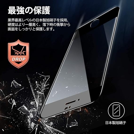 【高品質素材製、硬度9H】一般的なガラス保護フィルムよりも耐久性に優れたハードコーティング技術により、9Hの硬度を実現。特殊な飛散防止処理により、ガラスが割れても飛散せず、破片が付着したときに携帯電話の画面を傷から安全に保護できる