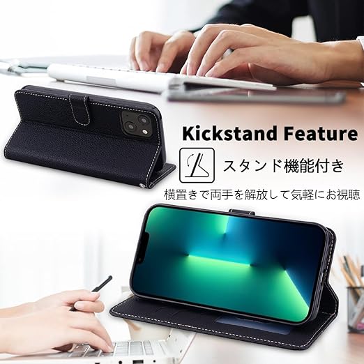 【特徴1:高品質PUレザー】軽量化のスマホケースです。外側カバーには滑り止めのライチ模様のPUレザーを採用します。内側のホルダーは柔軟なTPU素材を採用したソフトケースです。汚れにくくて指紋防止の特徴を持っております。耐衝撃の二重構造で落下の衝撃をうまく吸収します、本体をしっかりと守ります。