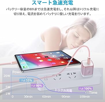 PD3.0 急速充電アダプター: Power Delivery 3.0の充電技術を採用して、Apple最新モデルiPhone8を始め、アップル純正の電源アダプターより3.5倍速く充電を実現できる20W USB C 充電器です。iPhone15 plusへ僅か30分で55%までに充電できます。USB Power Deliveryとの互換性をさらに高めながら、Qualcomm Quick Chargeなどの充電規格にも対応し、より幅広い機器へのフルスピード充電が可能となりました。