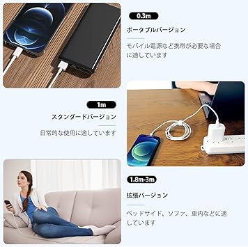 セット内容:USBライトニングケーブル【1M+1M+1M+1M】4本セット。さまざまな場面で使用できます。自宅、仕事、旅行、オフィス、自習室、喫茶店や車内等多くの場所でご利用いただけます。