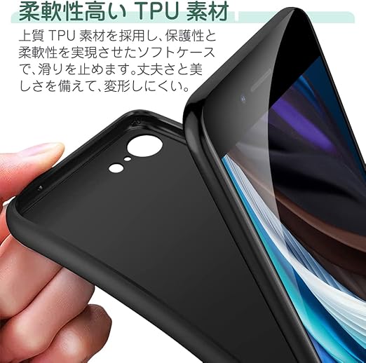 iPhone SE ケース 第2世代/第3世代 iPhone 7/iPhone 8 ケースマット ブラック 衝撃吸収 ?ソフトカバー 軽量 TPU? Qi ワイヤレス充電 『エアクッション すり傷防止 レンズ保護 指紋防止』 アイフォン SE 2/SE 3 カバー (ブラック) a