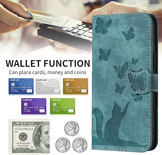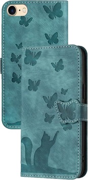 Vlimus iPhone SE 第3世代 ケース 手帳型 iPhone SE 2020 ケース iPhone8 ケース 手帳型 iPhone7 ケース iPhone SE2 用 スマホケース 手帳型 猫芝居蝶模様の表紙デザインと肌のような手触り iPhone se3 ケース アイフォン8 ケース 収納しやすい財布型保護カバー アイフォンse 第2世代 ケース iPhone7 カバー スタンド機能 磁気ボタン全面保護カバー 湖の緑 a
