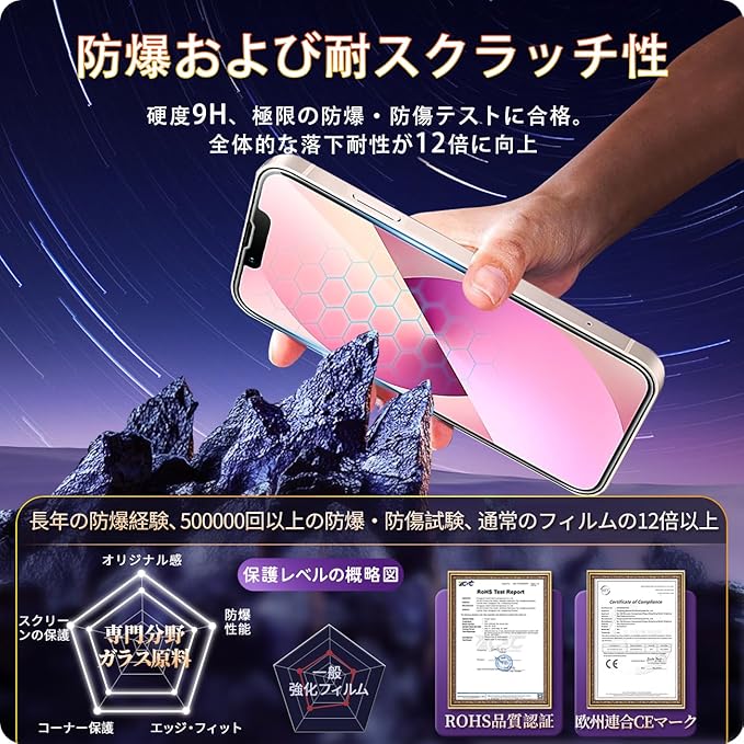 【対応機種・製品仕様】iPhone13 ガラスフィルムなので、ご購入前にお使いの携帯電話の機種を必ずご確認ください。弊社は専念にガラスフィルムを生産する業者なので、月間の注文販売数は3万枚を超えています!強化ガラスフィルムは あいほん13 スマートフォンのスクリーンにうまくフィットしております。しなやかさと強さを兼ね備えた新世代の高品質ガラスフィルムです。更に「割れにくい」、「手に傷しない」、「携帯ケースに邪魔しない」などの利点を備えて、割れにくく、オールラウンドに保護しますので、ご安心してお買