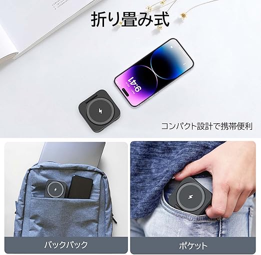 【折り畳み式・コンパクト】このiphone ワイヤレス充電器は3つの革新的なローラーデザインを採用しており、3つのパーツを完全にフラットに