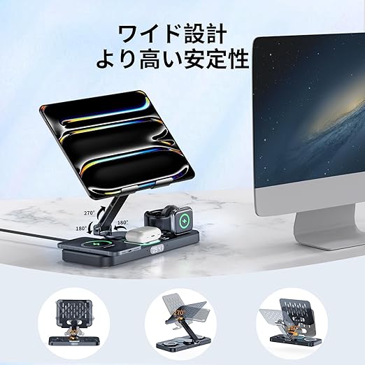 GLILAVOX 6in1 ワイヤレス充電器 Compatible with iPhone 16 pro max/15/14/13/12/11/XS/8シリーズ apple watch10-2シリーズ,airpods pro 2/pro/4/3/2用充電ステーション タブレット iPad用有線充電スタンド 折り畳み式 携帯便利 保護機能付き 家庭、会社用 a