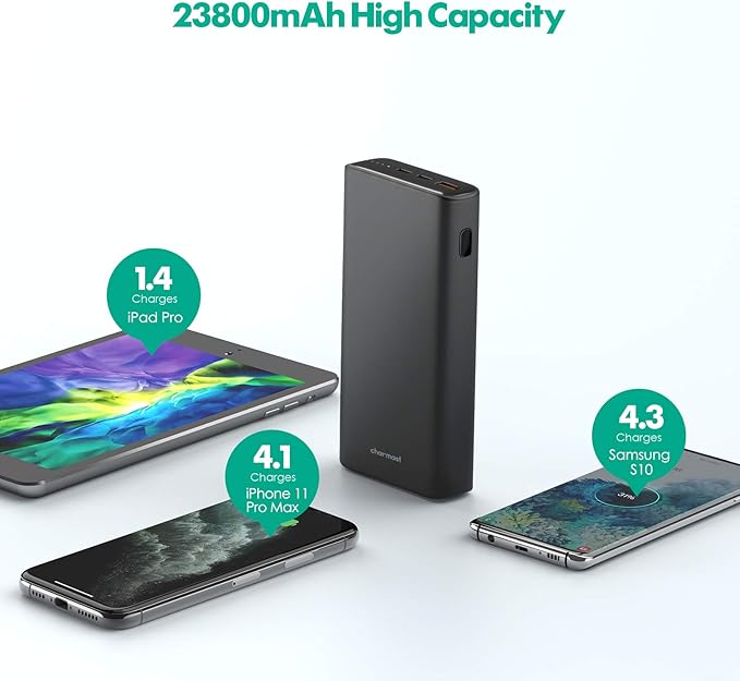 Charmast モバイルバッテリー 23800mAh 大容量 65W出力急速充電 PD/QC3.0 PD対応ポート*2 QC対応ポート*1 LED残量表示 低電流モード対応【PSE認証済】MacBook Lenovo HP iPad iPhone Android 各種対応(ブラック) a