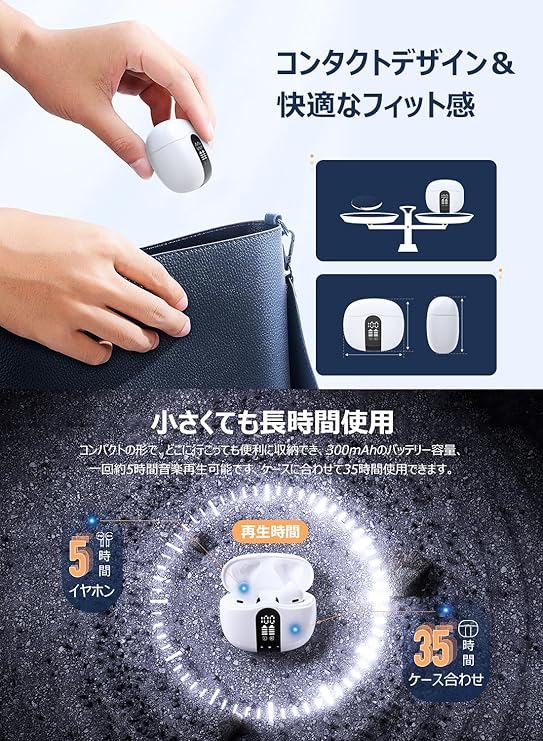 【絶好音質】ワイヤレスイヤホン Bluetoothイヤホン イヤホン Bluetooth5.4 hi-fi音質 AAC ダブルマイクENCノイズキャンセリング CVC8.0ハンズフリー通話 LED表示 ブルートゥース bluetooth 無線 軽量 iPhoneやAndroid対応 ビジネス、ウェブ会議、通勤、通学スポーツ 日本語音声 a