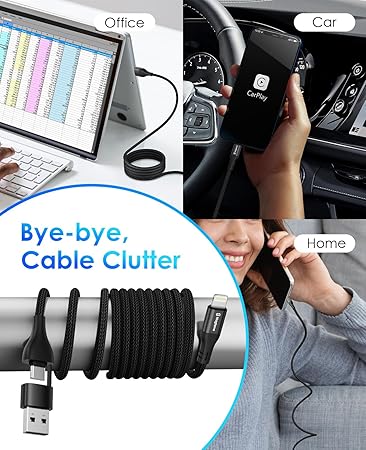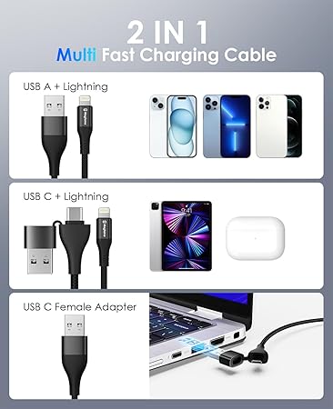 MFi認証取得、30W急速充電とデータ転送に両対応:2in1のiphone充電ケーブルはMFi認証済だから、iPhone機器との相性が良く、iOSがバージョンアップしたり、新しい機器に変わって