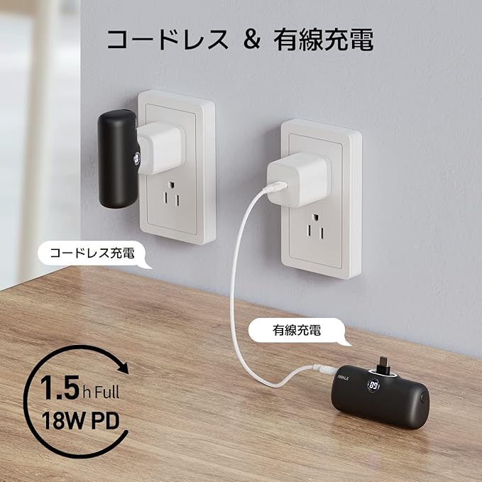 【超小型軽量化設計・充電しながら快適に使用】超コンパクトなデザインで、差し込んだまま充電しながらスマートフォン(iPhone 16シリーズ対応)を操作できるため、充電中でもストレスなくご利用いただけます。ケーブル不要で持ち運びも簡単、バッグの小物入れにも収まるミニサイズです。内蔵された高性能チップと安全機能付きバッテリーセルが、過充電・過放電・過剰電圧をしっかり防止。安心してお使いいただけるモバイルバッテリーです。