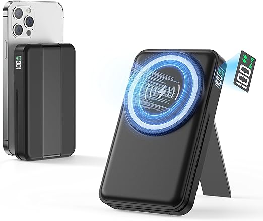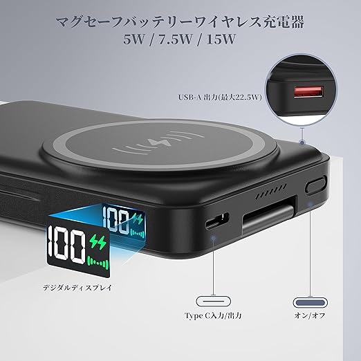 10000mAh マグセーフ充電器 iphone ワイヤレス モバイルバッテリー LEDディスプレイ スマホ携帯充電スタンド Type-Cポート&USB PD対応22.5W急速充電 iPhone14/14 Plus/14 Pro/14 Pro MAX/iPhone 13/13 Pro/13 Pro Max/13 Mini/iPhone 12/12 Pro/12 Pro Max/12 mini対応 大容量 軽量 ブラック a