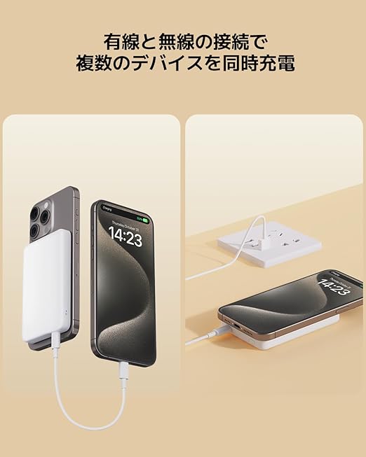 【5000mAhの容量】iPhone 15をほとんど1回分充電できるため、1日中の外出も安心です。