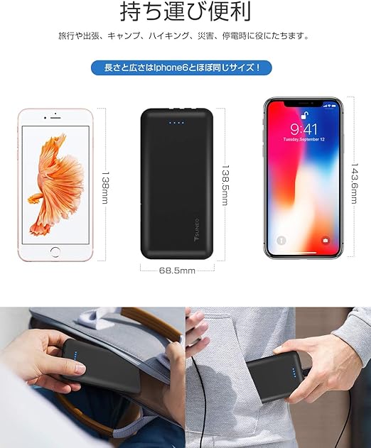 【豊富な出力 全機種対応】荷物を減らして別々に持ち運ぶ手間を省ける画期的なデザイン:Lightningポート?Type-Cポート?microUSBポートの三方から充電可能。3つ出力コネクタと1つ出力ポートが搭載しており、スマホ、カメラやゲーム機等デバイスを4台同時に充電することが可能。ケーブルを持ち歩く必要がありません、いつでもどこでも簡単にデバイスが充電できます。TSUNEOのスマート充電技術により、接続されたデバイスを自動的に検知し最適な電流をお送りします。かなり万能で優秀なモバイルバッテリ