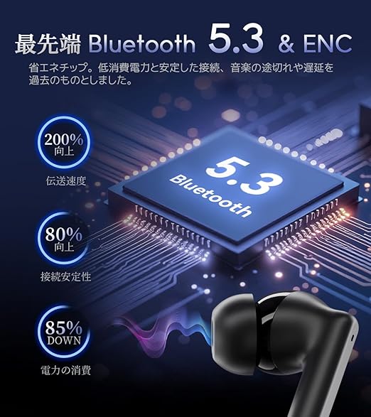 【Bluetooth5.3×瞬時接続】Bluetooth 5.3チップ搭載を搭載
