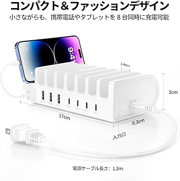 ANNIBER USB充電ステーション 8ポート iphone16 卓上充電スタンド PSE認証済 合計65W 卓上収納 8台同時スマホ/タブレット対応 a