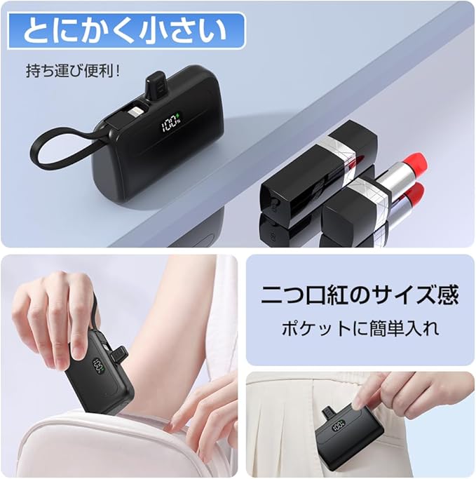 【本体直挿し型Type-C搭載|ケーブルレスで即充電】 モバイルバッテリー 本体に Type-C 端子を ケーブル内蔵 した直差し一体型設計を採用。スマホのType-Cポートにそのまま差し込むだけで、ケーブル不要で即座に充電がスタート。バッグやポケットから取り出して、わずか数秒で使用可能なスマートな充電器です。モバイルバッテリー タイプc / 直挿し モバイルバッテリー / スマホ 充電器 ケーブルレスなどをお探しの方にぴったりの一台。