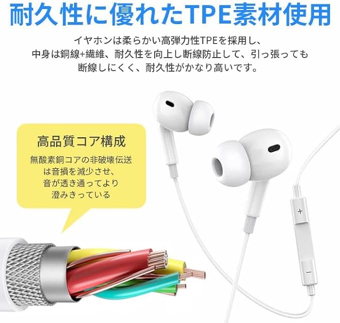 【2025年新版音質強化を実現&通話対応】iphone用 有線イヤホンには耐震振膜を搭載し、HiFi衝撃の高音質、高品質なワイヤレスのような感じで通話、純音信号がそのまま高速に伝送し、素晴らしい音楽体験を持たせます。周囲のノイズを遮断することができ、音量調節可能で、ライトニングイヤホンはマイクが内蔵している、普段の通話やウェブ会議などでも気楽にお使いいただけます。小さな筐体から音場の広い豊かなサウンドを実現。手軽にどこでも”、そして“誰でも”音楽の魅力を愉しむことができる。