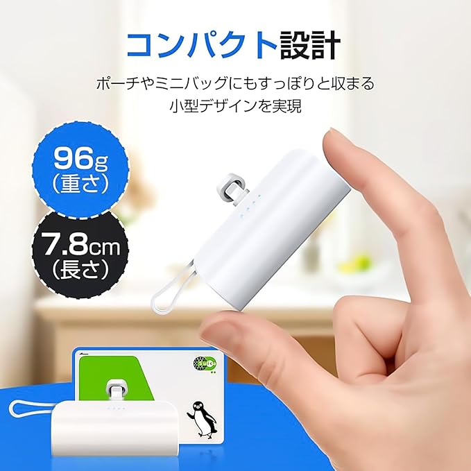 【6000mAhちょうどいい容量】6000mAhの容量で、スマホのフル充電に対応、旅行また出張中に予備電源として満足感のある容量です。出力口は入力口も急速充電で、救急車みたいな感じで短時間にスマホを低電力から復活します!朝出かけて夜戻ってくる時のお供には十分ですよ。持ち運びして人目につくアイテムだからこそ見た目は重要。