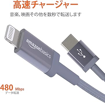 Amazonベーシック TypeC & ライトニングケーブル 急速充電 Apple MFi認証済み USB-C iPhone 14/13/13 Pro/12/SE(第2世代)/iPad 各種対応(ダークグレー 1.8m) a