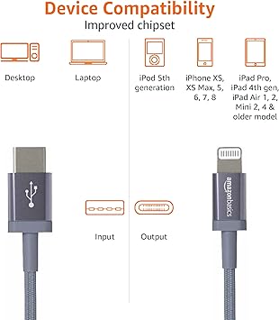 Amazonベーシック TypeC & ライトニングケーブル ナイロン 急速充電 Apple MFi認証済み USB-C iPhone 13/13 Pro/12/SE(第2世代)/iPad 各種対応(ダークグレー 0.9m) a