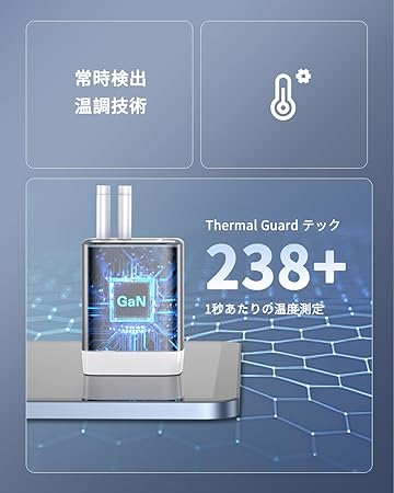 2つのType-Cポ-ト:最大45Wの出カを誇る2つのType-Cポ-トにより、同時に2台のデパイスを急速に充電できま
