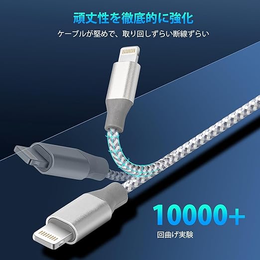 【高耐久】:外部は厳選された優れたナイロン素材によって覆われ、柔軟性がよく耐久性に優れます。10000回以上の折り曲げテストに合格しており、内部の無酸素銅、アルミ箔なども