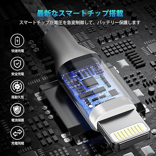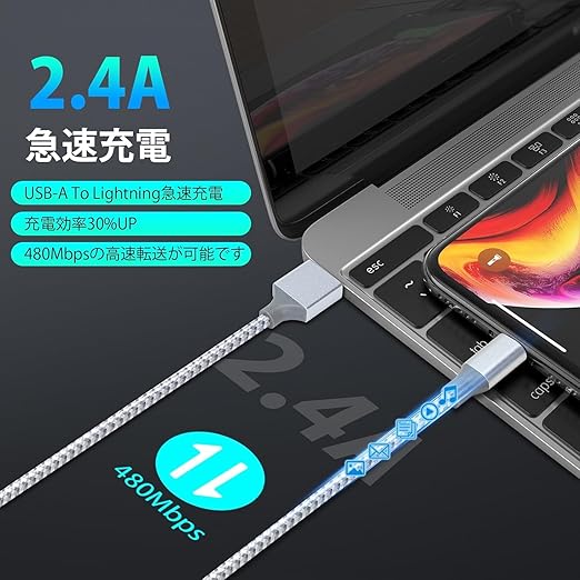 【2.4A急速充電&データ転送】:iPhone 充電ケーブルは最大2.4A急速充電、採用された高品質な銅線は電気抵抗が低く、充電時間を短縮してくれます。また、コネクタは耐熱アルミニウム合金端子を採用しており、導電率が良くデータ損失も最小限に抑えます。最大転送速度は480Mbpsでデバイスの同期と充電を同時に行うことができます。