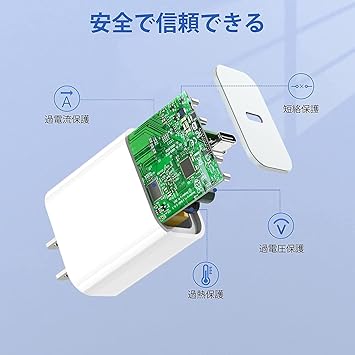 【20W高速充電】 Power Delivery3.0の充電技術を採用して、アップル最新モデルiPhone14を始め、アップル純正の充電アダプターよりもっと速く充電を実現できるUSB-C充電器です。テスト済み:iPhone 14へ僅か30分で58%までに充電できます。 Quick Charge 4.0/3.0/2.0急速充電と